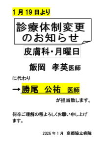 皮膚科 診療体制変更のお知らせ